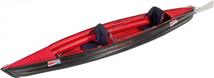 Das ideale Urlaubsboot für zwei Erwachsene. Durch den großen Sitzabstand besonders bequem und sicher. Die doppelte Seitenwulst schafft Platz im Boot und sorgt für trockenes Fahren. Die lange, gerade Wasserlinie sorgt für leichten Geradeauslauf.