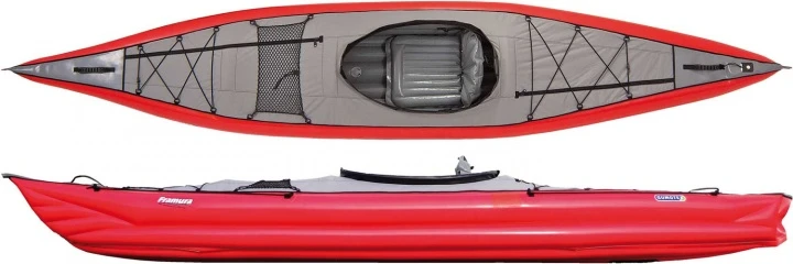 Das schnellste Gumotex Einerkajak. Wer ein Luftboot auch mal für ausgedehntere Touren nutzen will ist beim Framura richtig. Sowohl durch seine Laufeigenschaften, als auch den großen Stauraum eignet sich das Luftkajak auch für längere Ausfahrten. Ein aufblasbarer, bequemer Sitz bietet bei den Touren angenehmen Komfort. Durch die feste Abdeckung ist der Paddler vor Regen oder Wellen geschützt.