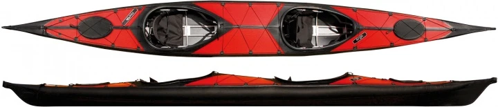 Sportlicher Tourenfaltkajak Zweier mit geschlossenem Oberdeck und 2 Einzelluken. Die robuste Haut aus der bewährten PVC/PU-Mischung ist mit zwei Ladeluken auf Bug und Heck, mit D-Ringen, Deckverspannungen und mit Kielstreifen ausgerüstet. Mit dem Gerüst aus eloxiertem Aluminium wurde dem leichteren Gewicht und kleineren Packmaß die Präferenz gewährt.