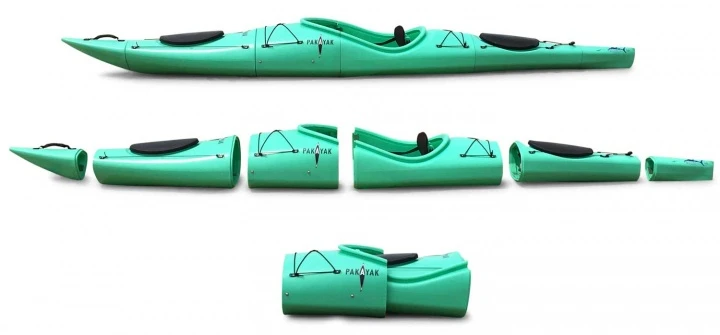 Alle Vorteile eines Feststoff-Kajaks, wie Robustheit, Performance, Kippstabilität, fest verschließbare Luken, etc. und trotzdem demontierbar und transportabel. Dank eines innovativen Verbindungs- und eines ausgeklügelten Stapelsystems in wenigen Minuten auf- und wieder abgebaut und in der Packtasche verstaut.