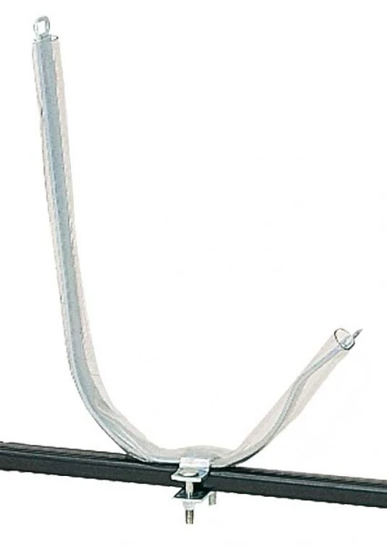 Robuste Ovalbügel aus vollverzinktem Stahl mit PVC-Ummantelung für den senkrechten Transport eines einzelnen Kajaks.